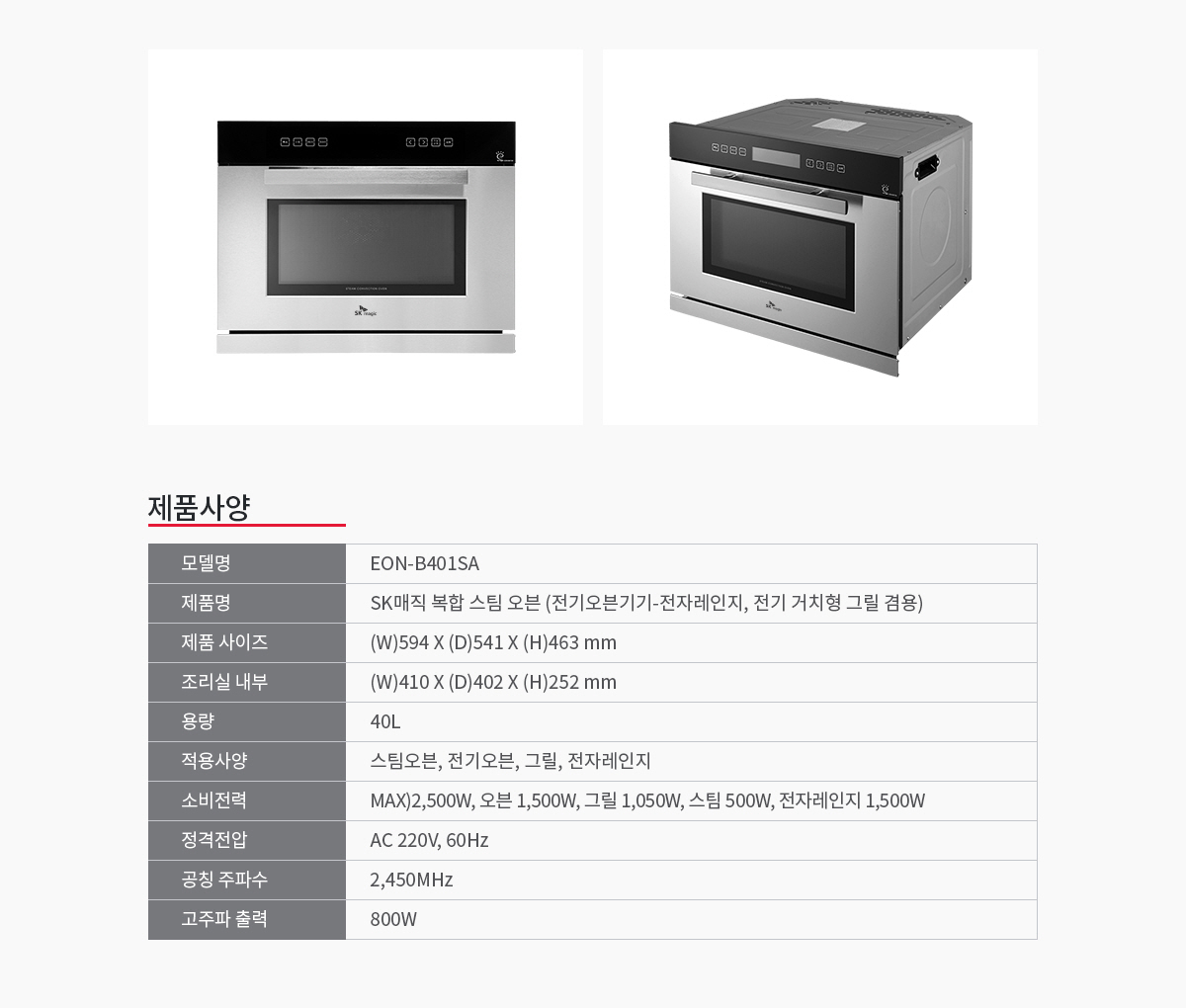 가전옵션) 전기오븐 SK매직 EON-B401SA 입니다.