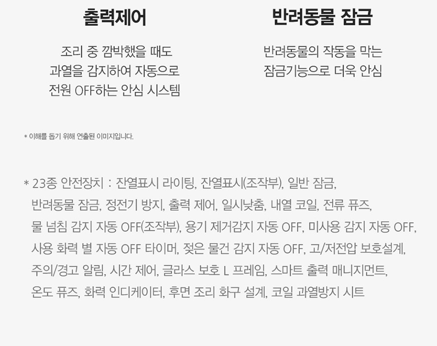 [특징] 프리존 / 타이머 / 터보부스터 / 잔열표시 / 버튼잠금 / 자동전원차단 / 보온모드 / 스마트폰제어 /